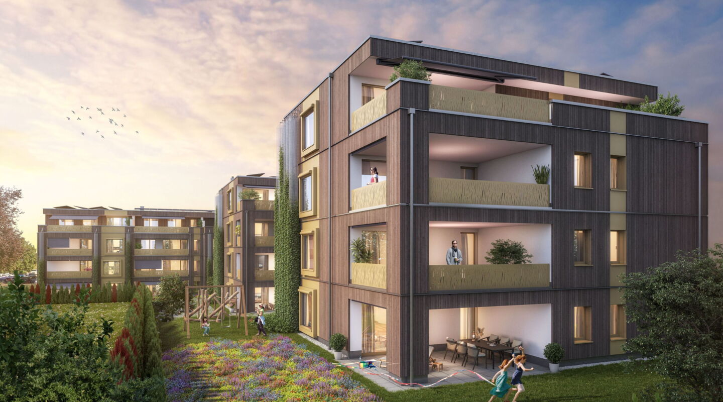 An zentraler und dennoch ruhiger Lage an der Kreuzlingerstrasse in 8580 Amriswil entstehen drei moderne Wohnhäuser mit insgesamt 21 exklusiven Eigentumswohnungen. Wir vereinen eine hochwertige und energieeffiziente Bauweise nach zertifiziertem Minergie-P-Standard, zeitgemässe Architektur und stilvolles Design mit einem gehobenen Innenausbau – und das alles zu einem optimalen Preis-Leistungs-Verhältnis. Moderne Technik wie Photovoltaikanlagen zur Stromerzeugung und Kühlfunktion in der Bodenheizung, sowie begrünte Fassaden sorgen nicht nur für Nachhaltigkeit, sondern auch für höchsten Wohnkomfort.